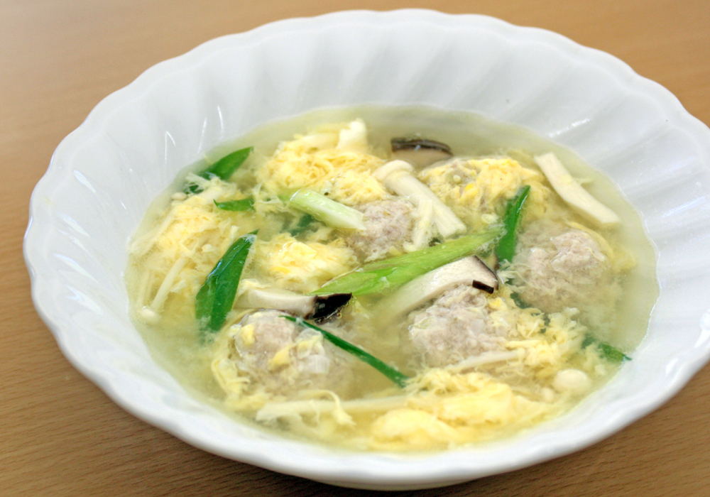 - 鶏肉は食べやすい大きさに切り、油を熱したフライパンで炒めて色が変わったら、玉ねぎ、しめじを加えて更に炒めて酒を加える。